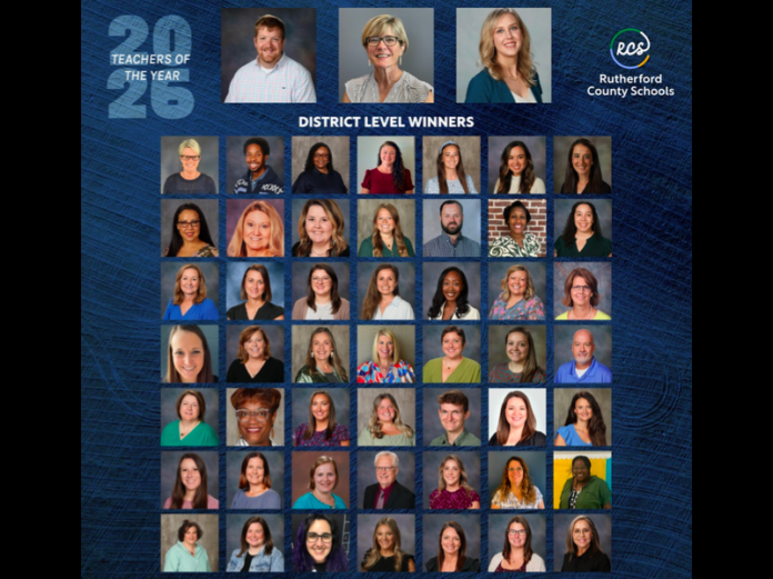 Rutherford County Schools has announced its 2025-2026 Teachers of the Year. Three teachers were chosen as district level winners and will be submitted for recognition at the regional and potentially state level.